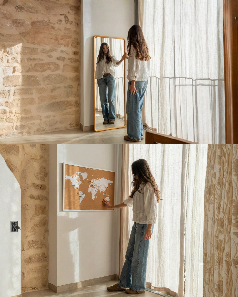 Remplissez vos murs de vos meilleurs souvenirs, qu'il s'agisse de photos de style Rétro accrochées à une guirlande lumineuse ou d'un tableau avec votre photo personnalisée présidant le salon.