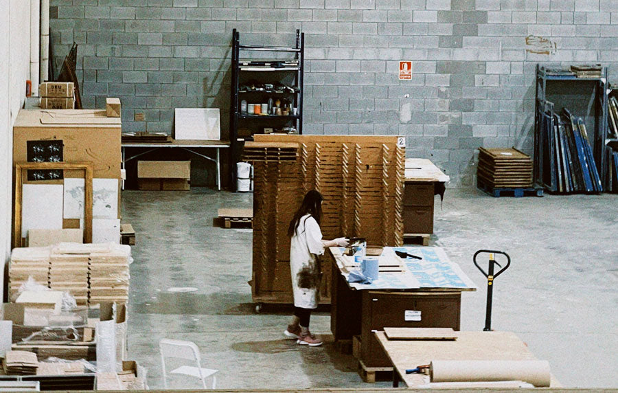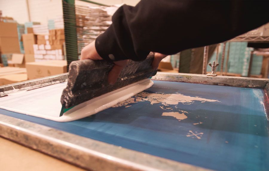 Wir verwenden zwei Drucktechniken für unsere Holzplakate. Siebdruck zur Herstellung von Weltkarten, bei dem eine Farbe durch ein auf einen Rahmen gespanntes Gewebe übertragen wird. Digitaldruck, der eher für individuelle Drucke mit einem einzigartigen Design verwendet wird.