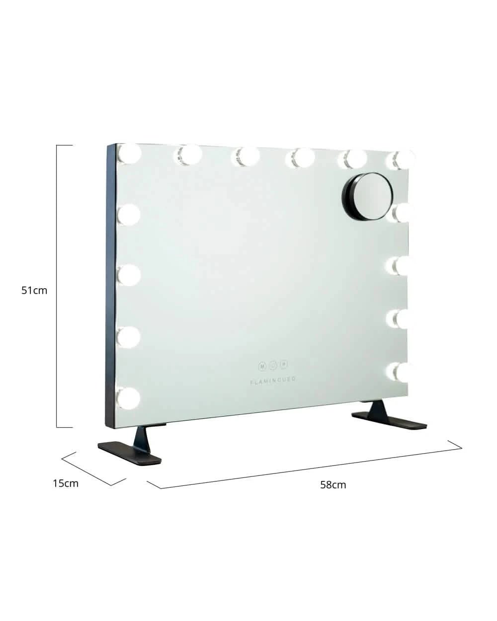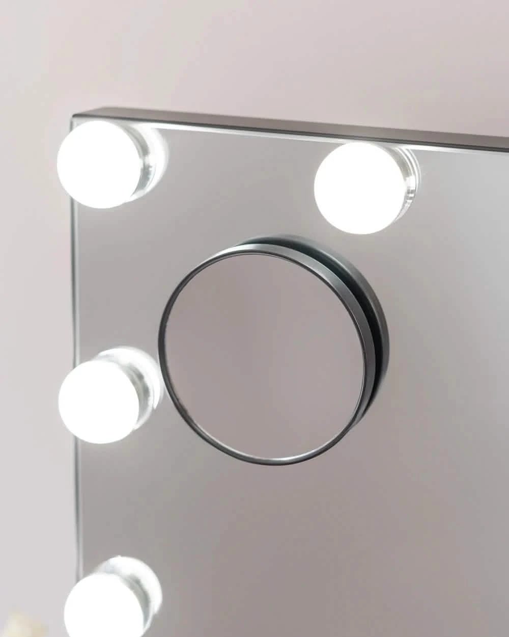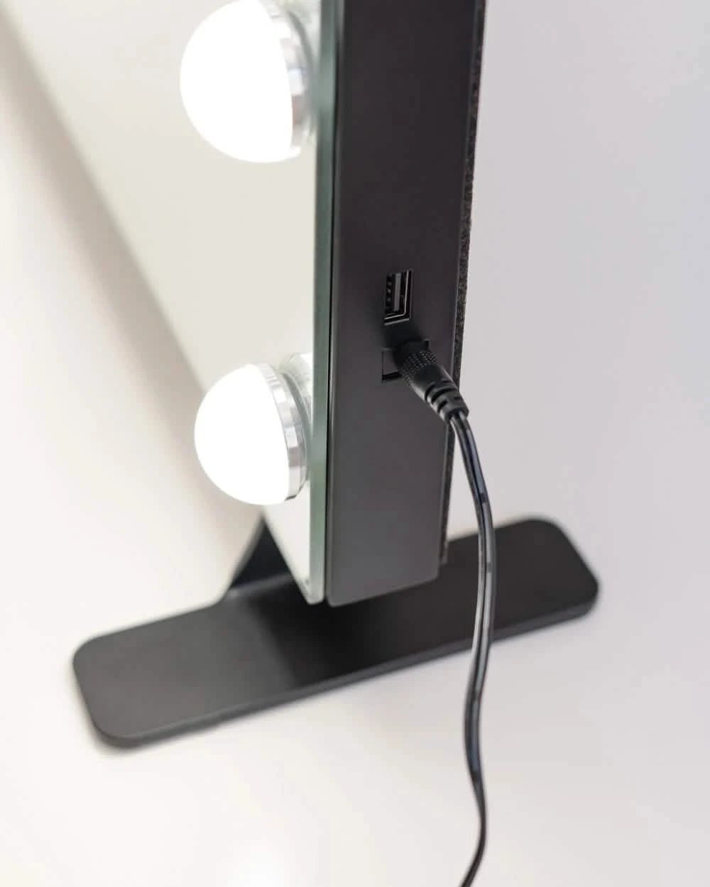 Espejo negro con 14 luces LED, ideal para maquillarte o mimarte con tus rutinas de belleza.