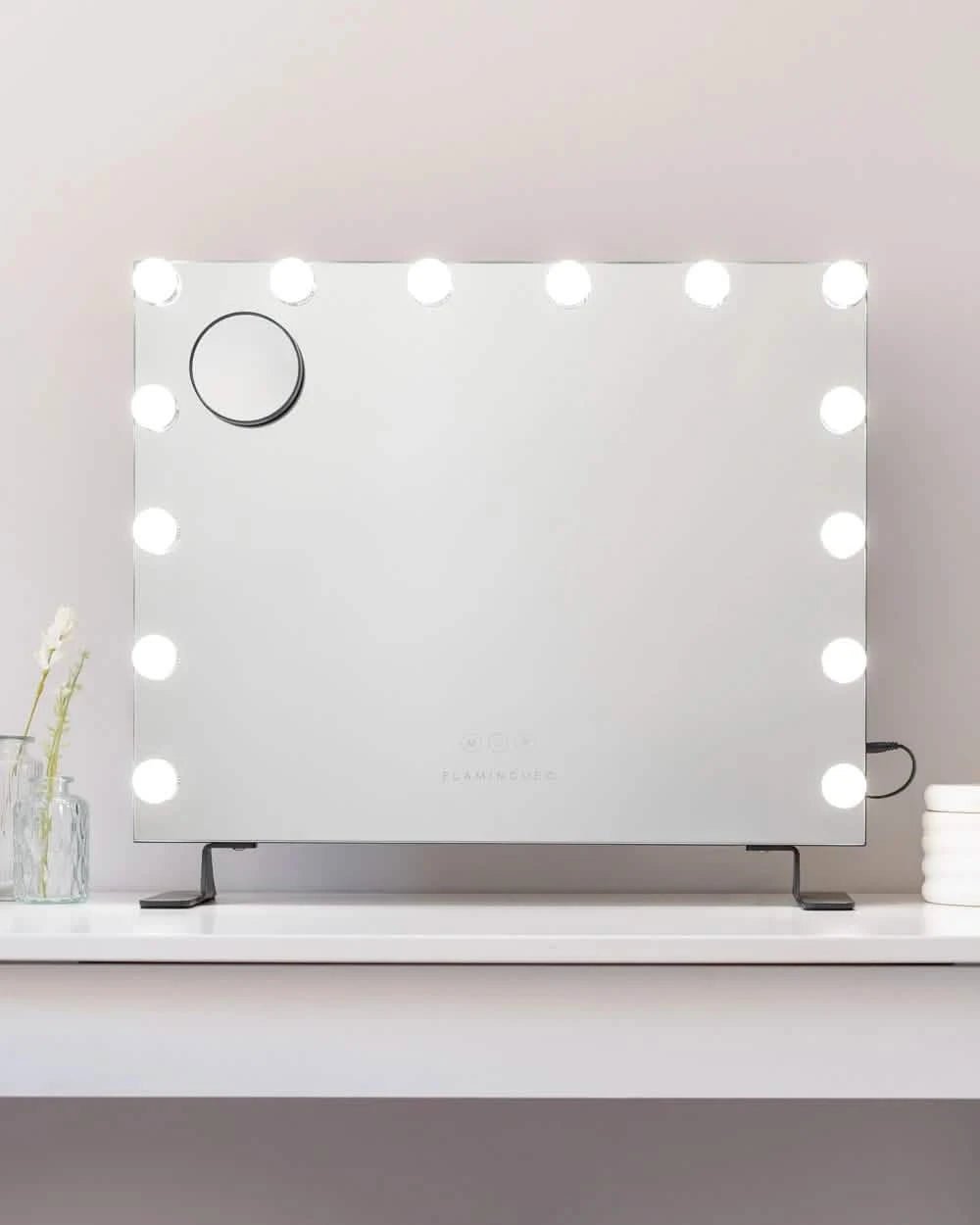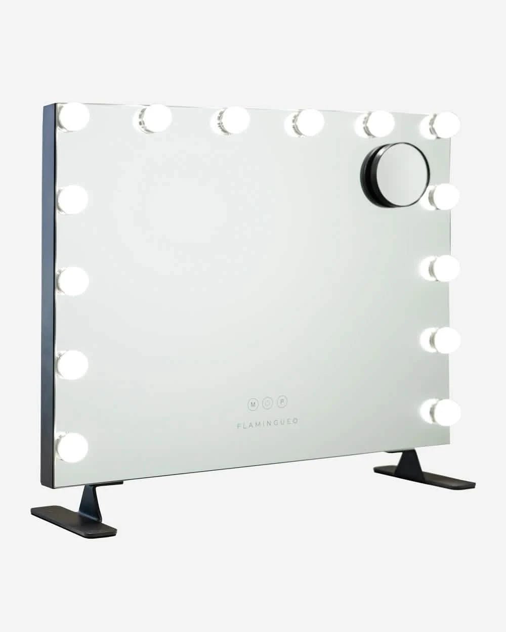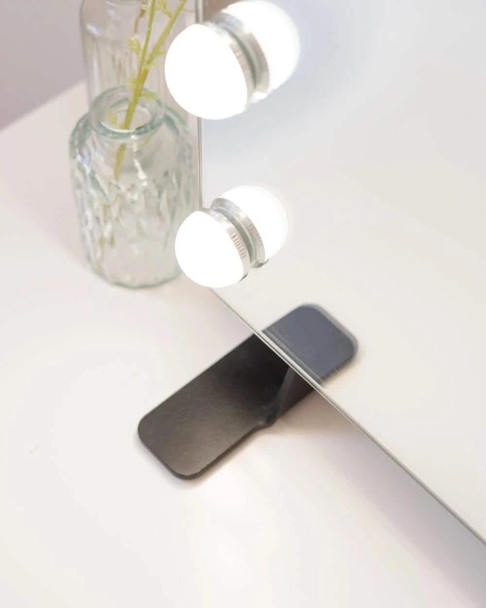 Espejo negro con 14 luces LED, ideal para maquillarte o mimarte con tus rutinas de belleza.