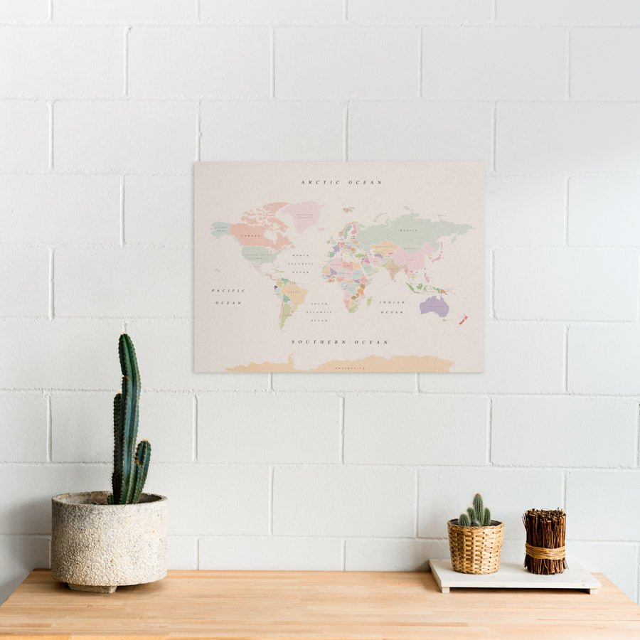 · White cork map: the Nordic decoration lovers' fav; the creamy-white and cork combination adds a cosy and organic touch to every space..