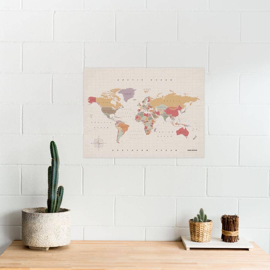· Brown cork map: A great choice if you want to add a more natural touch to your home. Brown and cork tones are hues that complement each other perfectly without standing out too much. If you look for delicate nuances, this is the perfect map.