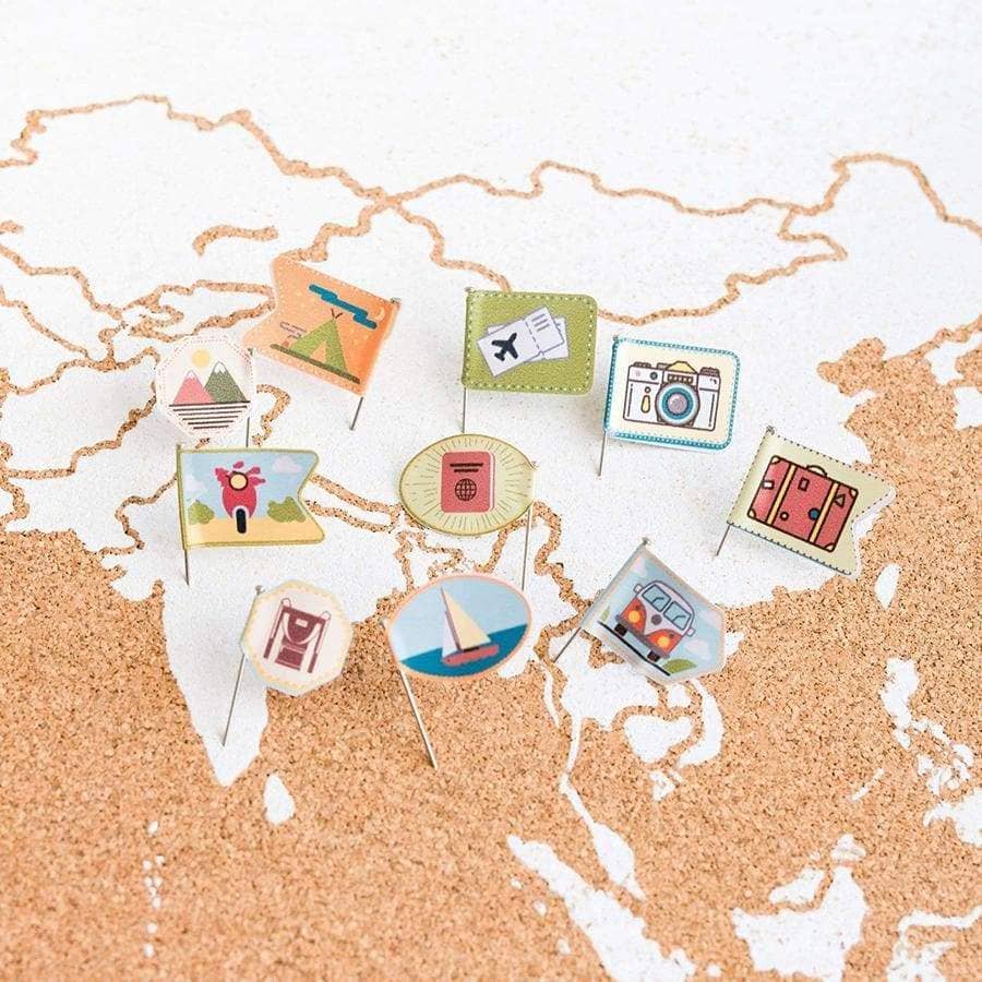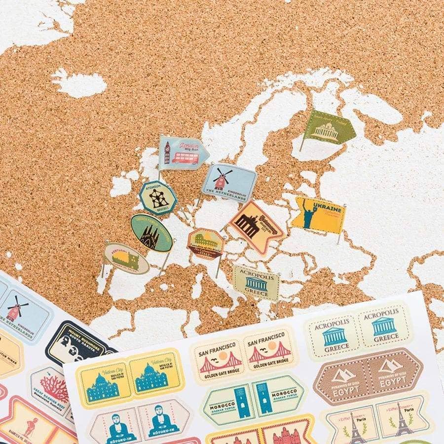 Quatre ensembles avec 64 autocollants des meilleurs monuments du monde, des spécialités les plus savoureuses, des animaux les plus incroyables et de tous les objets qui rendront votre voyage unique et mémorable. La meilleure collection d'autocollants pour décorer votre mappemonde avec une touche originale. Qu'attendez-vous, quelle est votre prochaine aventure ? Vivez-la et surtout souvenez-la avec les meilleurs accessoires pour votre carte. Fabriqué à Barcelone.